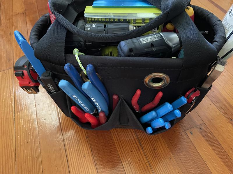 Klein Tools 5144bhb14os Hard Body Bucket Aerial Oval Tool Bucket With Drain Holes 29 Pockets Tool Pouches Amazon Com